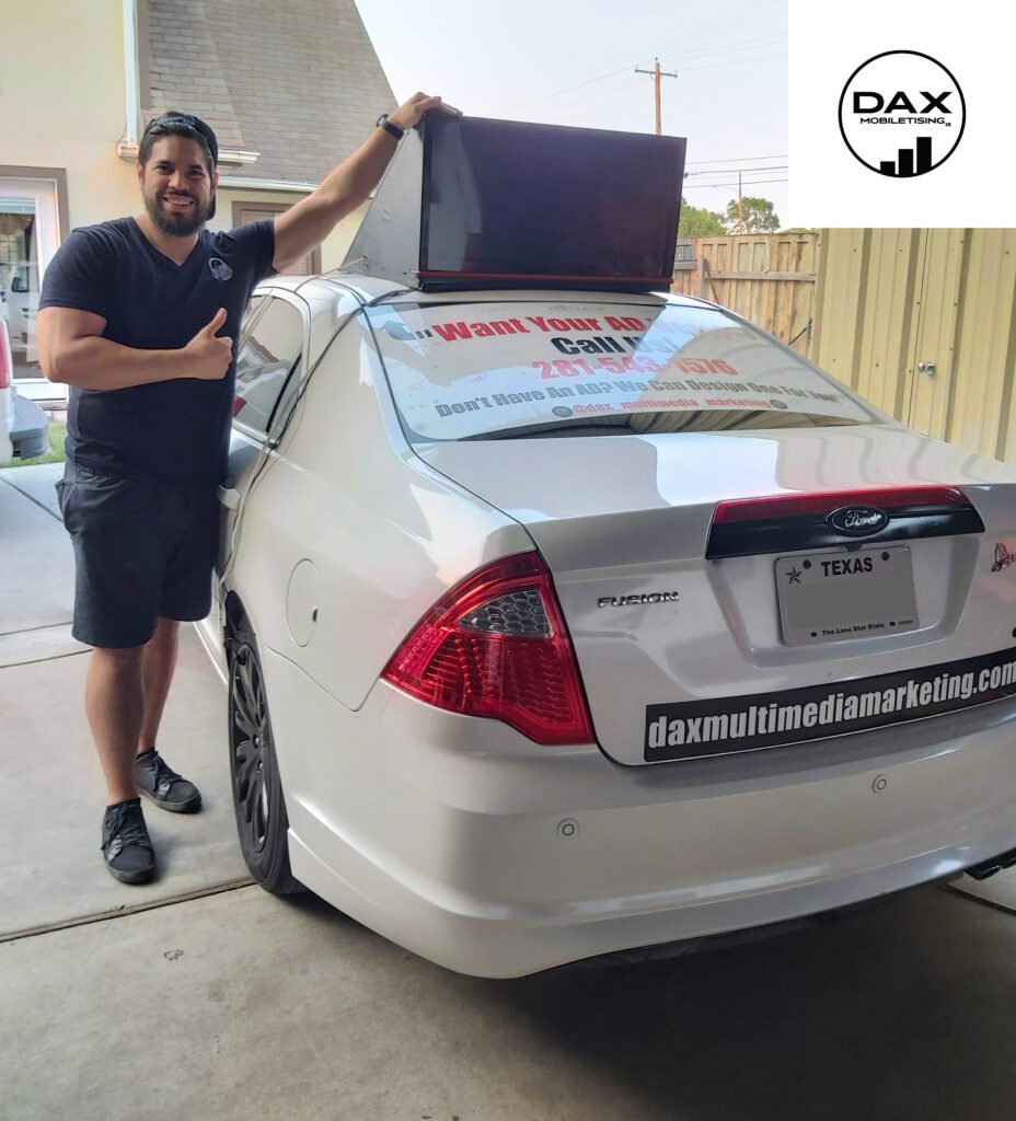 The all in one, non destructive, easily removable device to display advertisements while you drive!